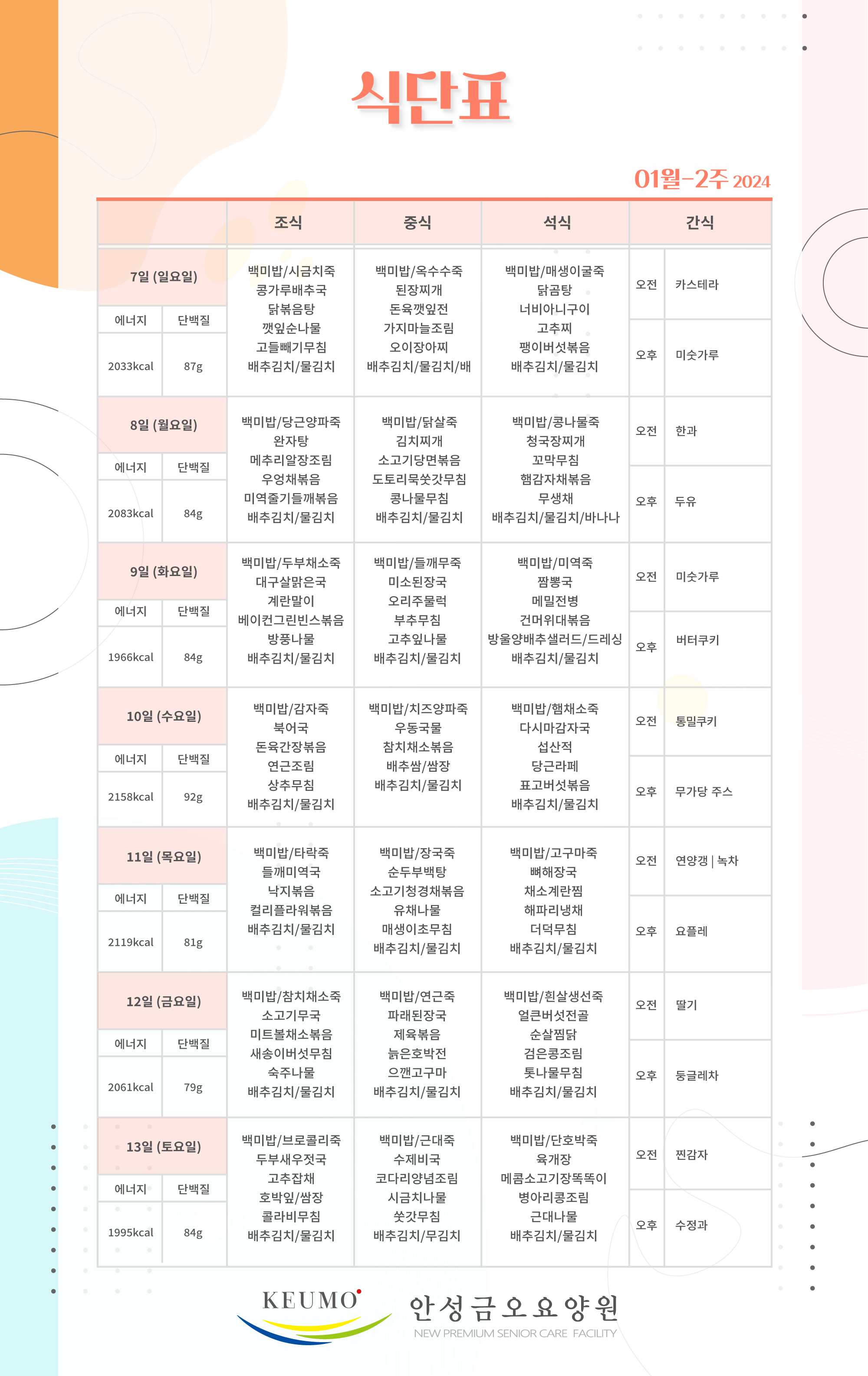 Á¦¸ñ 2024³â 1¿ù - 2°ÁÖ ½Ä´ÜÇ¥ ÀÔ´Ï´Ù.