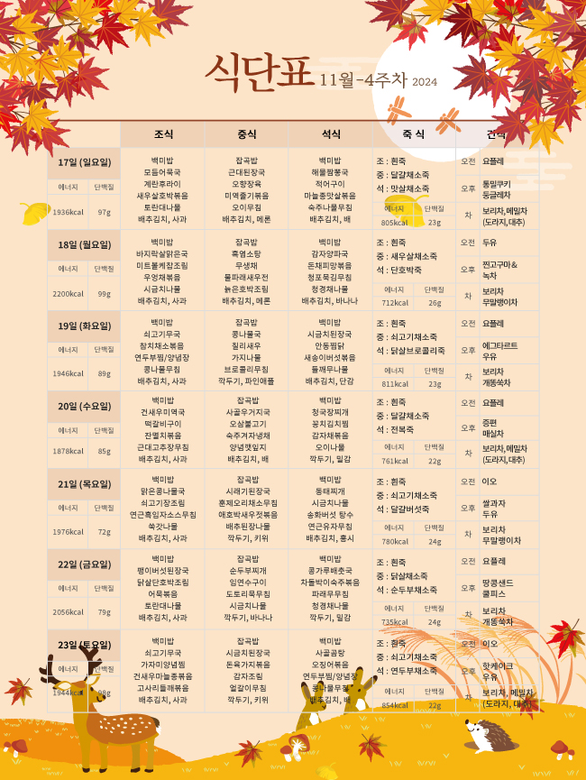 2024³â 11¿ù ½Ä´ÜÇ¥ ÀÔ´Ï´Ù.