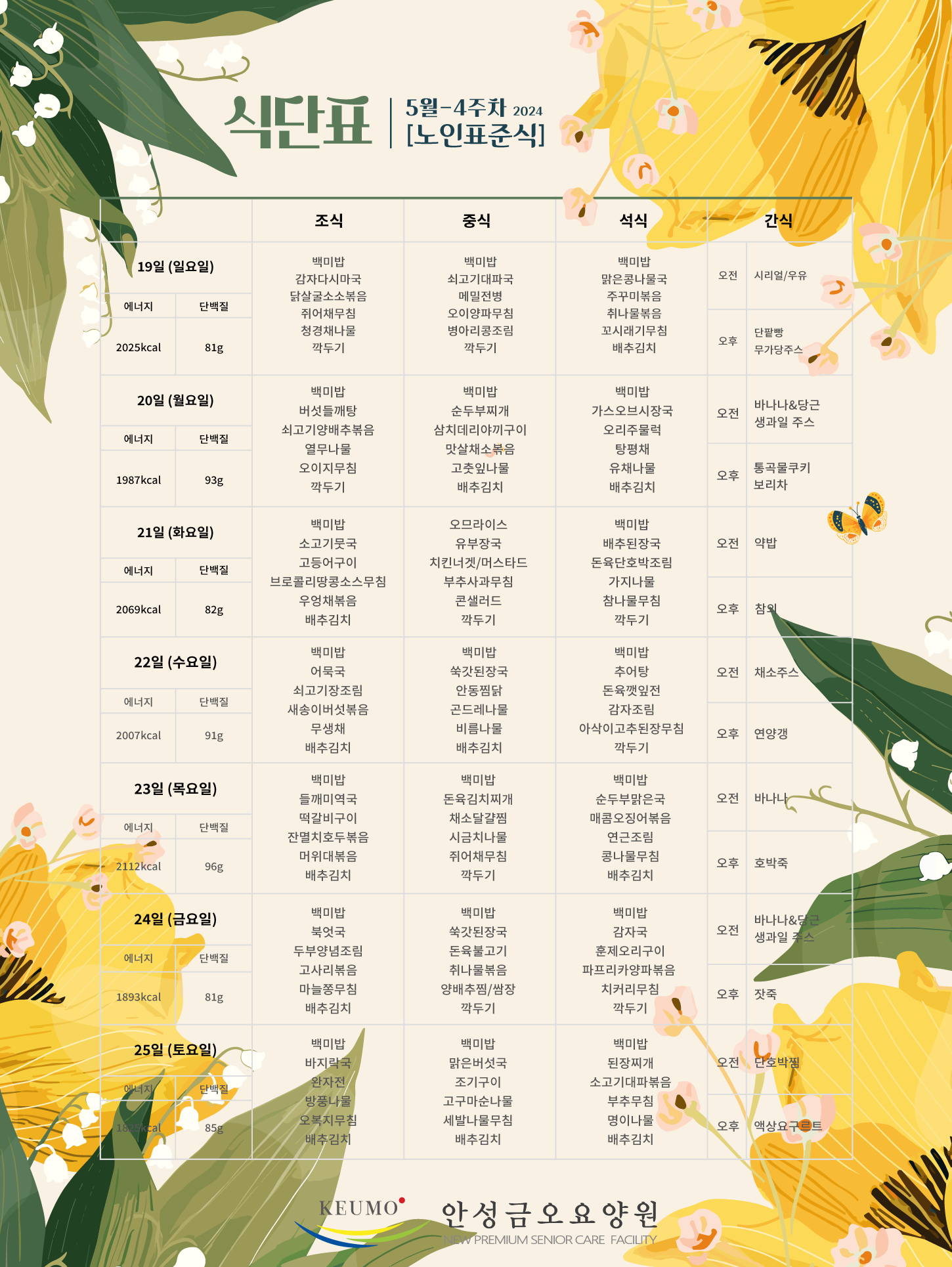 2024³â 5¿ù 4ÁÖÂ÷ ½Ä´ÜÇ¥ ÀÔ´Ï´Ù.