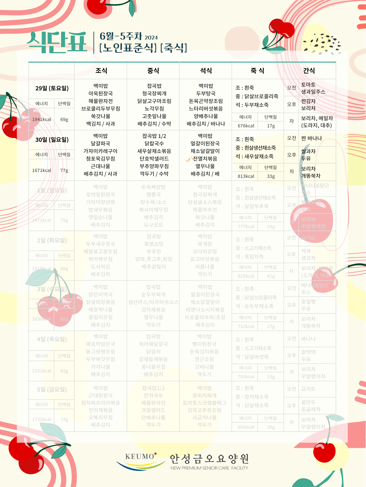 6¿ù 5ÁÖÂ÷ ½Ä´ÜÇ¥ ÀÔ´Ï´Ù.