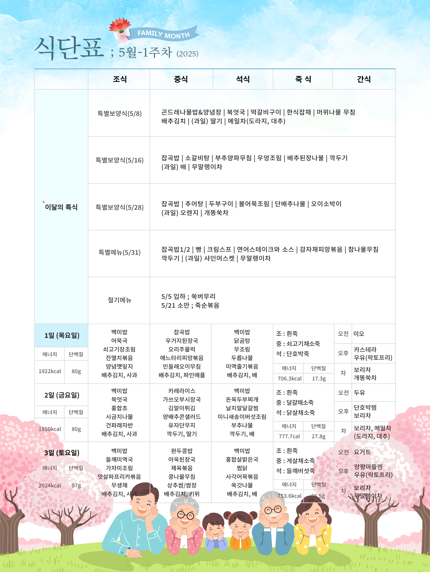 2025³â 5¿ù 1ÁÖÂ÷ ½Ä´ÜÇ¥ÀÔ´Ï´Ù.