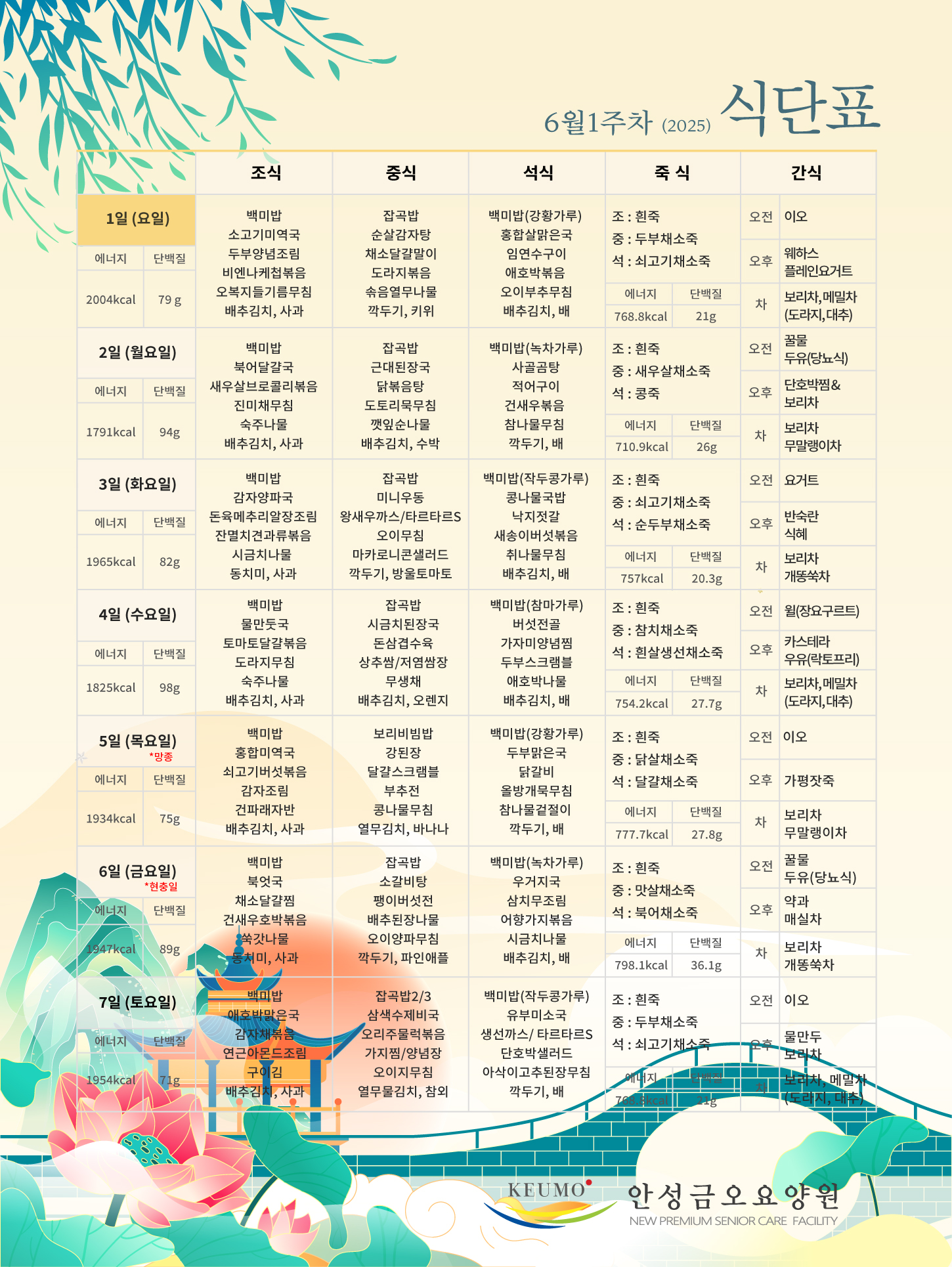 2025³â 6¿ù 1ÁÖÂ÷ ½Ä´ÜÇ¥ÀÔ´Ï´Ù.