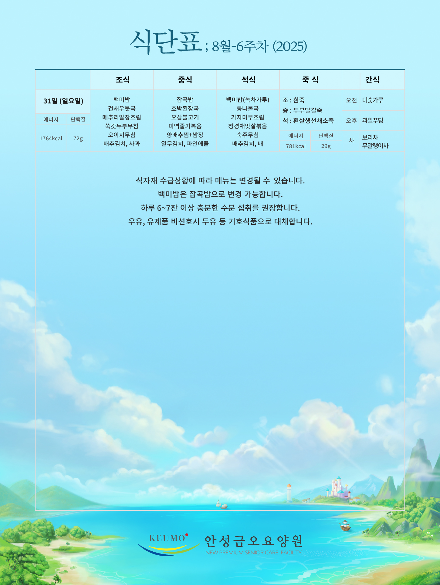 2025³â 8¿ù 6ÁÖÂ÷ ½Ä´ÜÇ¥ÀÔ´Ï´Ù.
