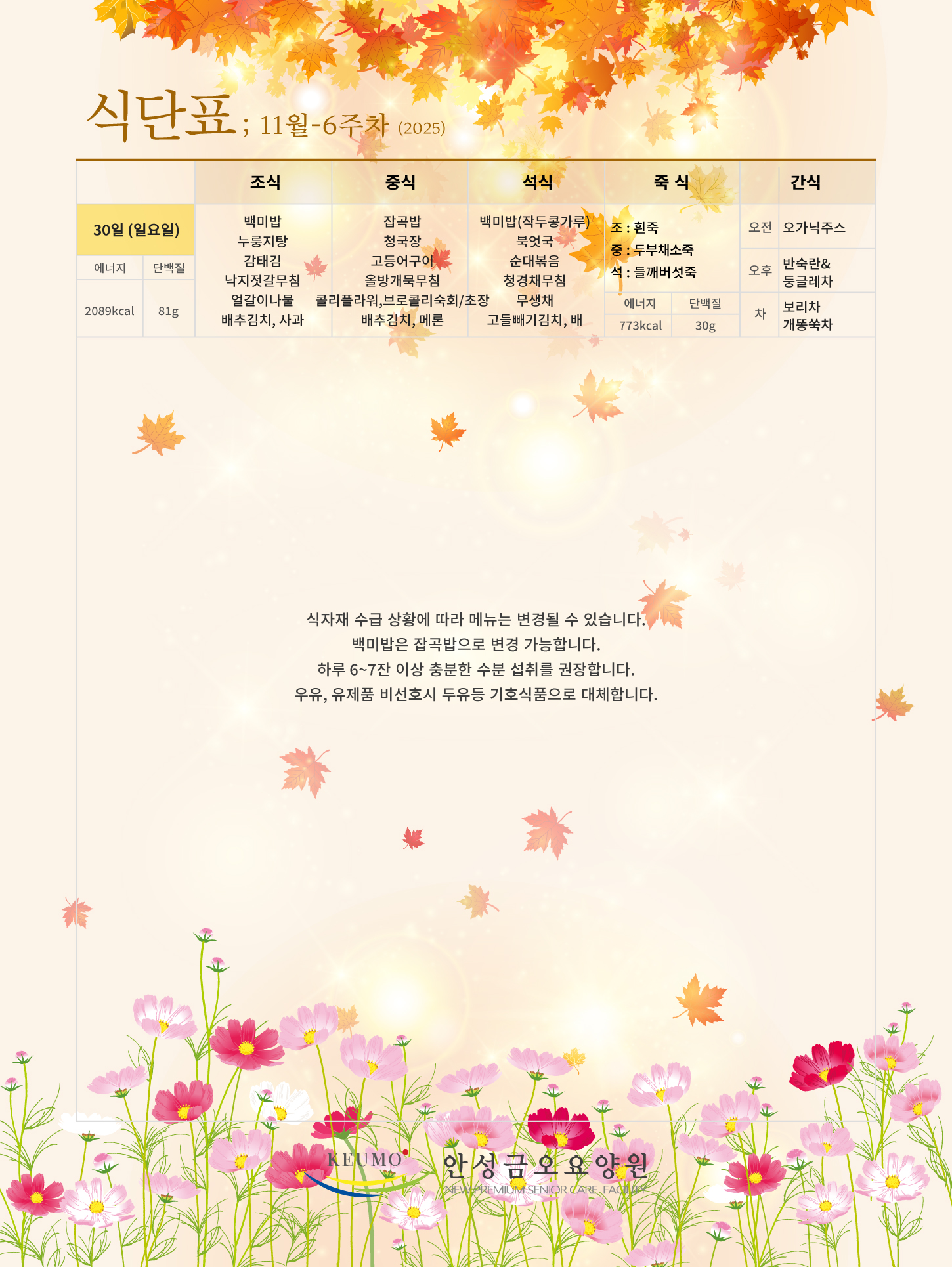 2025³â 11¿ù 6ÁÖÂ÷ ; ½Ä´ÜÇ¥ °øÁöµå¸³´Ï´Ù.