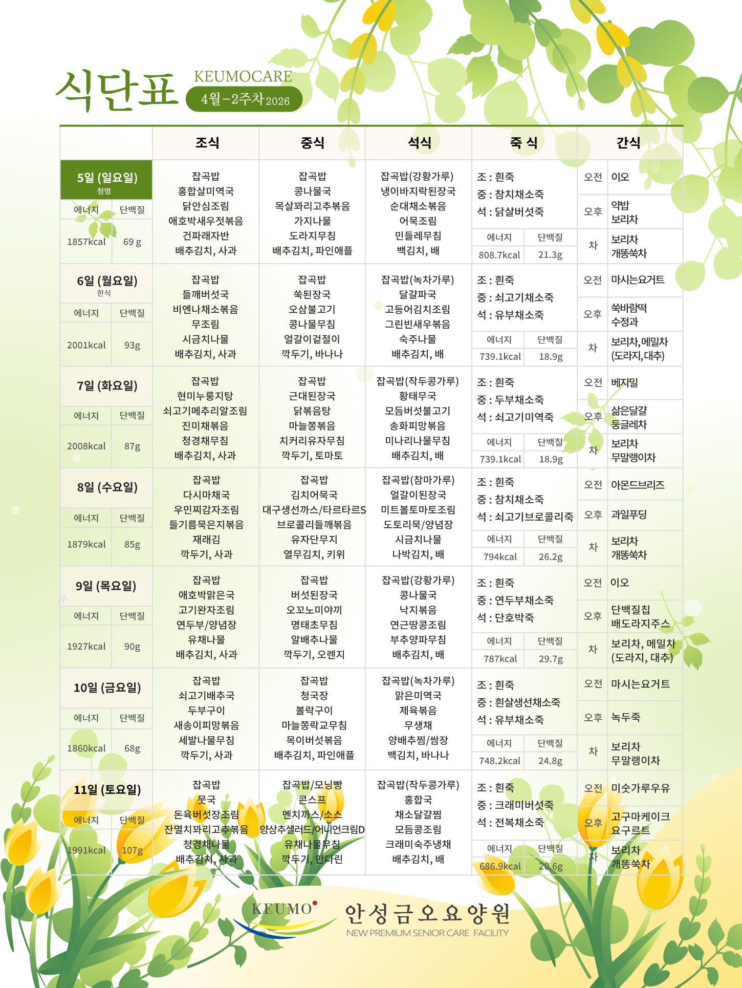 2026³â 4¿ù 2ÁÖÂ÷ ½Ä´ÜÇ¥ ¾È³»µå¸³´Ï´Ù.